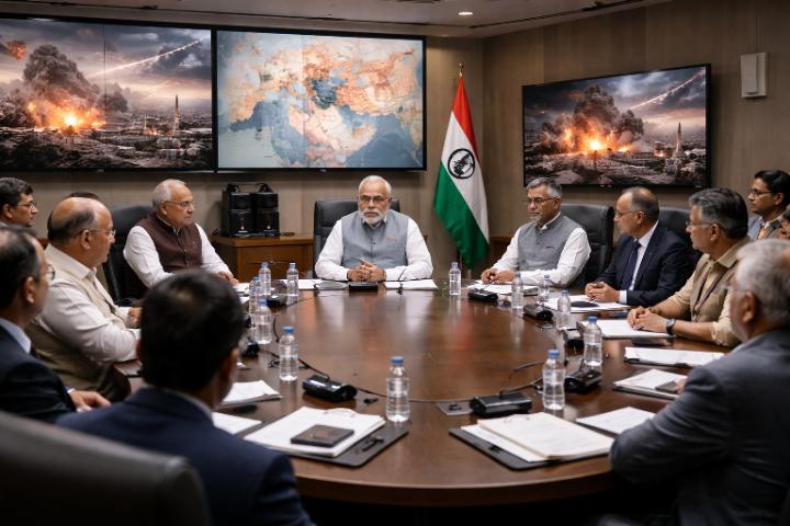 ఇజ్రాయెల్–ఇరాన్ మధ్య యుద్ధం తీవ్రరూపం దాల్చడంతో పశ్చిమాసియా ప్రాంతం ఉద్రిక్తంగా మారింది. ఈ నేపథ్యంలో ఆదివారం రాత్రి ప్రధాని నరేంద్ర మోదీ అధ్యక్షతన అత్యున్నత స్థాయి భద్రతా కేబినెట్ కమిటీ (CCS) సమావేశం న్యూఢిల్లీలో జరిగింది. రాజస్థాన్, గుజరాత్, తమిళనాడు పర్యటనల అనంతరం రాజధానికి చేరుకున్న వెంటనే ప్రధాని ఈ కీలక సమావేశాన్ని నిర్వహించారు.